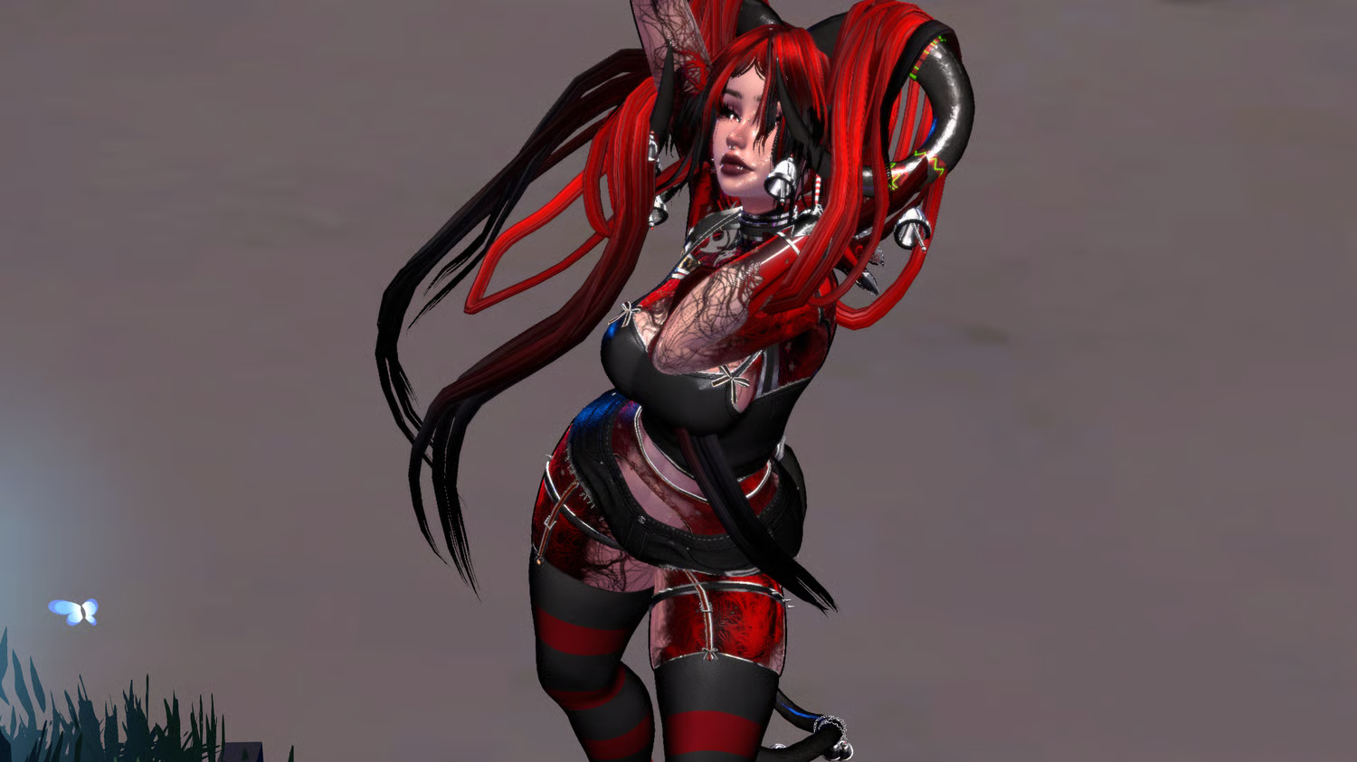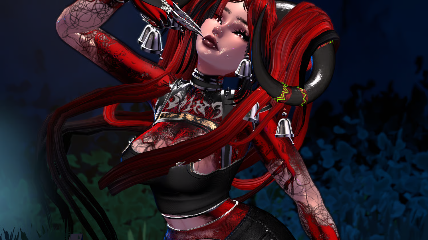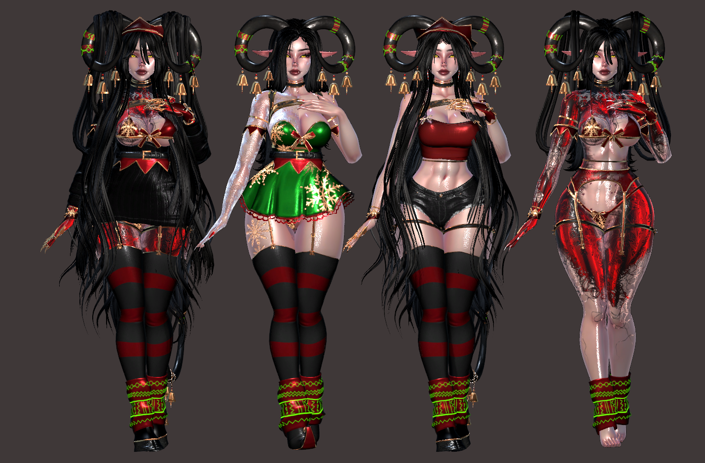 Base: Zinpia • Head, Outfit 1 & 2: Nessy • Horns: DoctorMystic • Hooves: novapie • Tail: Nightshvde • Tattoo 1: kijiio • Tattoo 2: uwublossem • Base & Makeup Texture: Jvliette • Hair 1: V3N1X • Hair 2: Vampi • Hair 3: Saikura • Hair Textures: cicieaaavr • Earrings: Skulli • Sweater Dress: Sezzy • Nails: Zenifyy • Claws: Vinuzhka • Shorts: Yuutsu • Tank Top: Enkeli • Eyes: therealthiccwitch • Candy Cane/Sword: Makarov • Invisible Effect: Phawksea • Custom Sword Particle: MedicE • Better Gestures: Kiriecho • Wholesome setup: Wholesome • Matcap: Shugan • Gogo Loco: Franda • Everything else by me