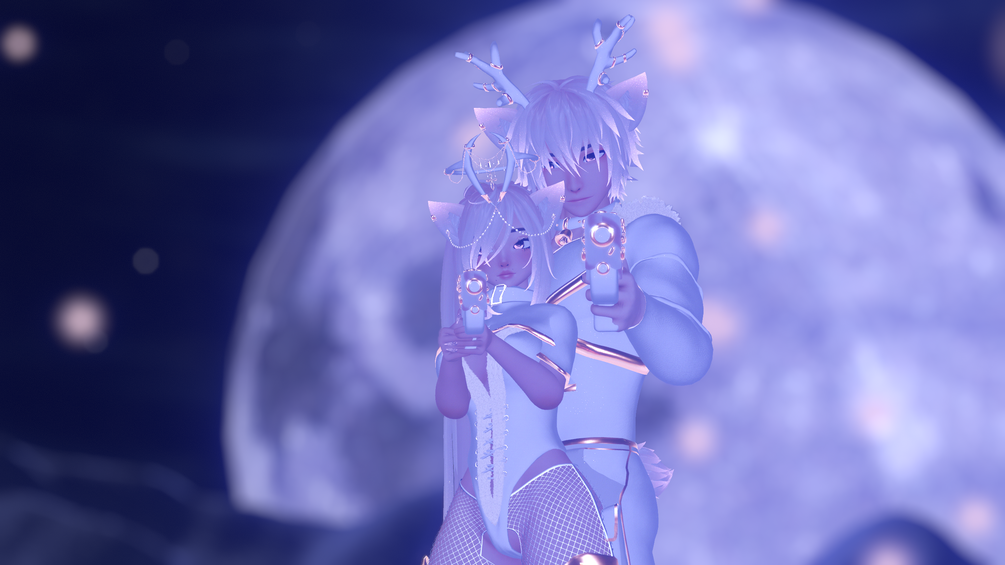 Candy cane staff: LuciferBB#6668 • Body: Rhoda#7392 • Head: Sugs#9795 • Hair: Powdur#6808 • Shoulder sleeve: Y-O-U#6513 • Raindeer set & heels: Renipuff#3700 • Tail: Pressi#2634 • Earrings: cockwee#5331 • Raliv • Interactive chain: vrcmods • Gift box: Phauxelate#9017 • Shoes: Gashina#1960 • Shorts: Dallaire#1510 • Gun: wen#4076 • Hand trail toy: Dannyboi#9001 • Everything else made by me